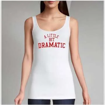 Show moreStep into the spotlight with the A Little Bit Dramatic Shirt, a stylish tribute to the iconic character Regina George from Mean Girls. This chic white tank top is designed by Velvet Apparel, known for their exceptional quality and trendy pieces. Made from soft, breathable fabric, this tank offers both comfort and style, making it the perfect addition to your wardrobe. Whether you’re channeling your inner Plastics queen for Halloween or attending a themed bachelorette party, this shirt makes a striking impression. The flattering cut compliments all body shapes, ensuring you feel as good as you look!
