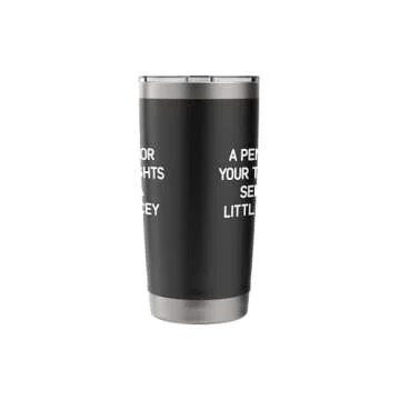 Show moreA Penny For Your Thoughts Seems A Little Pricey is not just another tumbler; it's a hilarious accessory that adds a splash of dry humor to your daily hydration routine. Made from high-quality stainless steel, this insulated tumbler is designed to keep your beverages hot or cold for hours on end, making it perfect for coffee lovers or iced beverage enthusiasts alike. The witty sayings and funny puns printed on this tumbler offer not only style but also a delightful conversation starter among friends and family. Whether you’re at home, at the office, or on the go, this tumbler makes your drink transport experience uniquely enjoyable and light-hearted. Its ergonomic design ensures a secure grip, allowing you to sip with ease and comfort.