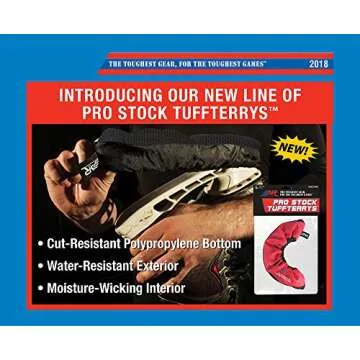 The A&R Sports Pro-Stock Tuffterry Cover is the ultimate solution for passionate hockey players looking to protect and maintain their skate blades. Designed by A&R Sports, a leading brand in sports accessories with over 20 years of experience, this cover ensures that your hockey equipment remains in top condition. The black Tuffterry cover features a unique combination of a water-resistant exterior and an ultra cut-resistant nylon bottom, which together provide...