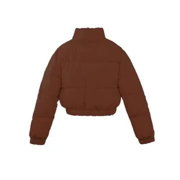A2Y Cropped Zipper Puffer Jacket Coffee S