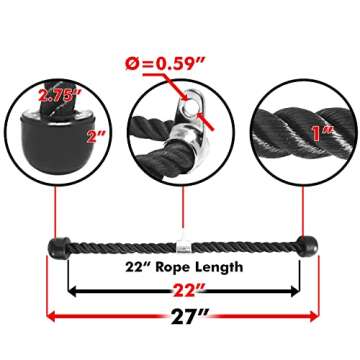 A2ZCARE Deluxe Tricep Rope Cable Attachment, 27 & 36 Inch Rope Length, Non-Slip & Easy to Grip with Snap Hook for Gym & Home Workout (A. 27" Black)