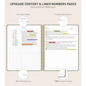 A4 Spiral Notebook Journal 8.5” x 11”, 256 Numbered Pages Hardcover Leather Journals for Women Men, Large Lined College Ruled Notebooks, 100GSM Thick Paper, Spiral Bound Journal for Work School, Green