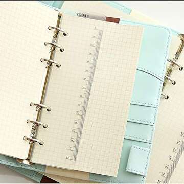 A5 6 Holes Binder File Folder Organizer Slide-in Plastic Bookmark Dividers Ruler (Gold, 1 Count)