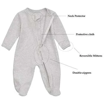 What sets Aablexema apart are the ingenious features that pay attention to the smallest details. The unique double zipper design allows easy access for diaper changes without the hassle of removing the entire outfit. With safety tabs to shield your baby’s chin from the zipper, parents can breathe easy knowing their little one is secure and comfy. The built-in mittens prevent tiny hands from scratching and keep fingers warm, making these footies versatile for any season. Plus, the foot grips add stability for your growing explorer!