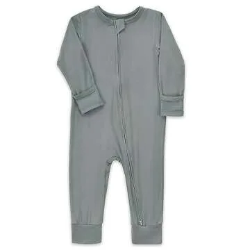 Aablexema Baby Footless Pajamas Zipper with Mitten, Rayon from Bamboo, Infant Long Sleeve Romper Pjs(Olive & Moonlight Blue,Newborn)