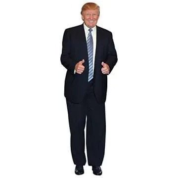 Show more Introducing the fabulous Aahs Donald Trump Life Size Cutout, a show-stopping conversation starter that is bound to bring joy and laughter to any gathering! Standing proudly at 6 feet tall, this cutout is made in the USA with high-quality cardboard that ensures durability and longevity. Perfect for political enthusiasts or anyone looking to inject a dose of fun into their environment, this cutout captures Donald Trump in all his iconic moods, from enthusiastic thumbs-ups to cheeky middle fingers. It's not just a decorative piece; it's a lifelike creation that glimmers with personality and life.