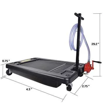 When comparing the Aain A047 with other oil drain pans on the market, it stands out with its impressive 17-gallon capacity, ensuring fewer trips to empty it during use. Unlike other drain pans that may struggle with maneuverability and capacity, this caddy combines heavy-duty casters with a low-profile design, making it perfect for various vehicles. Additionally, the quality polypropylene construction provides enhanced durability compared to competing models. While some alternatives may feature electric pumps, the reliable manual pump offered here, despite occasional feedback about ease of use, maintains a significant cost advantage and ensures independence from electrical sources.
