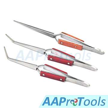 AAProTools Fiber Grip Cross Lock Tweezers Self Closing 6" Set of 3 Bent Tips & Straight Tip