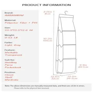 AARAINBOW 1 Pack Hanging Handbag Purse Organizer, Bags Organizor for Purse 8 Pockets Wardrobe Closet Space Saving Handbag Storage, 44.5L x 13.5W (B-Light Gray)