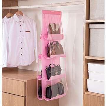 AARAINBOW 2 Packs Hanging Handbag Purse Organizer, Purse Bag Organizer 8 Pockets Handbag Storage, Hanging Bag Organizer for Closet Rack for Purses, Wardrobe Closet Space Saving, 41L*13.5W (B, 2 Pink)