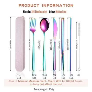 AARAINBOW 6 Pieces 18/8 Stainless Steel Flatware Set Portable Reusable Cutlery Set Travel Utensils Set Including Chopsticks Knife Fork Spoon Straws Cleaning Brush Dishwasher Safe (Multicolored)