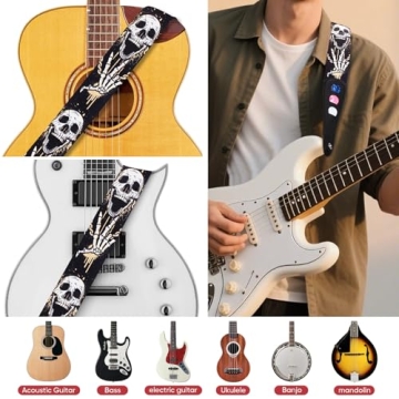 Why You Will Love This Product:Your musical journey deserves an accessory that complements your talent and passion. With its comfortable design, essential accessories, and eye-catching visuals, the AARVI® Guitar Strap Set enhances the joy of playing and inspires creative expression. Whether you’re just starting or honing your skills, you’ll find confidence in every strum, knowing your instrument is securely by your side. Plus, the stylish skull design adds a personal touch, turning every performance into a memorable experience.