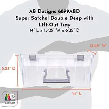 AB Designs 6899ABD Super Satchel Double Deep with Lift-Out Tray and Removable Dividers, Stackable Home Storage Organization Container, Clear with Sliver Latches and Handle