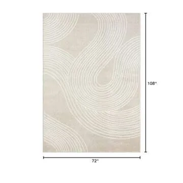Show moreIntroducing the Abani Nuevo Collection Area Rug, a stunning 6'x9' addition to your home that perfectly combines functionality and style. With its low pile height of 0.4", this area rug offers a plush yet practical surface that feels soft underfoot while being low maintenance. Crafted with a sophisticated cream and beige color scheme and a modern, curved pattern, it effortlessly enhances any space, from the living room to the bedroom or office. This rug's elegant design is not just visually appealing but also versatile enough to complement various decor styles, making it an ideal choice for anyone looking to add a touch of class.