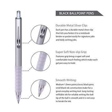 Abaokai Black Ink Ballpoint Pens 1mm, Medium Point Gel Pens Black Ink Work Pen with Super Soft Grip Ball Point Pens for Men Women Retractable Office Pens (4 Pack)