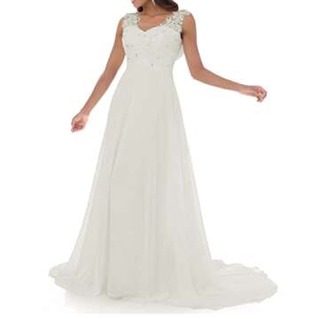 Abaowedding Women's Wedding Dress Lace Double V-Neck Sleeveless Evening Dress Ivory US 26 Plus