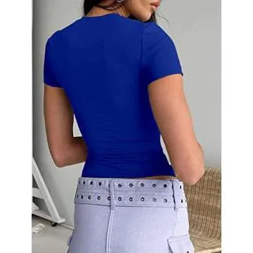 Show more Elevate your casual wear with the Abardsion Women's Casual Basic Going Out Crop Top, a perfect blend of style, comfort, and versatility. Made from a superior fabric blend of 92% Rayon and 8% Spandex, this cropped tee offers a soft and elastic feel, making it ideal for all-day wear. The royal blue color adds a vibrant touch to your outfit, effortlessly transitioning from day to night. Whether you're layering it with other pieces or wearing it solo, this top is sure to turn heads.