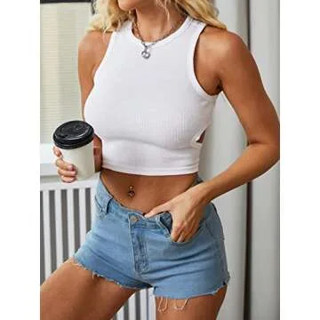 Abardsion Women's Ribbed Crop Tank Top Sleeveless Crew Neck Racerback Cut Out Backless Halter Tops (White, S)