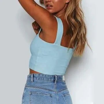 Abardsion Women's Sexy Sleeveless Skinny Basic Strappy Crop Tank Tops (Light Blue, M)