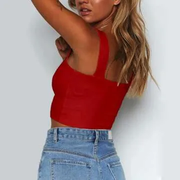 Abardsion Women's Sexy Sleeveless Skinny Basic Strappy Crop Tank Tops (Big Red, S)