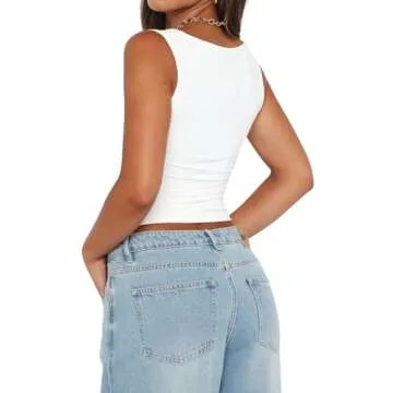 Show more Introducing the Abardsion Women's Sexy Crop Top, the ultimate addition to your summer wardrobe! Crafted from a luxurious blend of 92% Rayon and 8% Spandex, this crop top offers unparalleled softness and breathability that keeps you comfortable all day long. The double-layered design ensures that it remains opaque and supportive, allowing you to wear it bra-free if you choose. The classic square neck and sleek sleeveless design create a flirty and sophisticated look perfect for any occasion. Available in a sleek white finish, this top is sure to become your go-to choice as the temperatures rise.