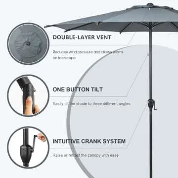 Abba Patio 9FT Lyon Outdoor Patio Umbrella Outdoor Table Umbrella with Push Button Tilt and Crank Market Umbrella 8 Sturdy Ribs UV Protection Waterproof for Garden Deck Backyard Pool Grey