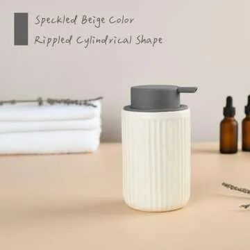ABBI NIMO Beige Ceramic Foaming Soap Dispenser, Speckled Rippled 12 Oz Bottle with Gray Silicone Pump, Foam Dispenser for Kitchen or Bathroom, Speckled Beige