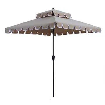 Show moreTransform your outdoor experience with the ABBLE 7 Ft Square Scallop Outdoor Patio Umbrella. Perfectly designed to fit 24" to 38" patio tables, this umbrella provides a generous shade for 2 to 4 people, making it an ideal choice for both residential backyards and vibrant commercial venues such as coffee shops and balconies. Its elegant tan color with scalloped edges not only adds a touch of sophistication but also blends seamlessly with a variety of outdoor decor styles.