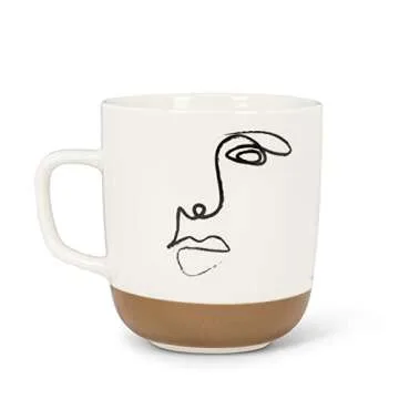 This mug features a striking line drawing of an abstract face, adding an artistic flair to your beverage experience.