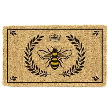 Elegant Abbott Collection Bee in Crest Doormat with Anti-Slip Backing (30x18)