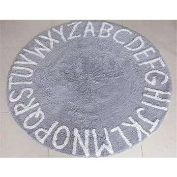 ABC Nursery Rugs Round Kids Rug Circle Alphabet Rug Kids Play Mat for Infants Boys Girls Soft Cotton Carpet Educational Area Rug 47inch (Gray)