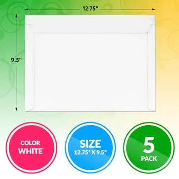ABC Rigid Mailers, 12.75 x 9.5 inch. Pack of 10 White Self-Sealing Cardboard Envelopes. 550 GSM Stay Flat Photo Shipping Cardboard Mailer Envelope. Stay Flat Mailers for CD, Photos, Documents
