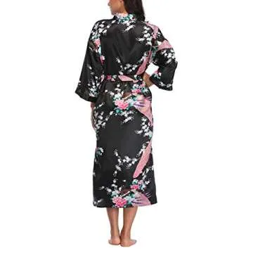 Indulge in the luxurious embrace of the ABC-STAR Women's Kimono Robe, a stunning piece that boasts a beautiful peacock and blossom print, perfect for adding a touch of elegance to your loungewear or post-shower routine. Crafted from high-quality satin, this robe features a silky feel that glides effortlessly over your skin, ensuring maximum comfort whether you wear it as a bathrobe or a chic dressing gown. The lightweight and breathable fabric makes it a wonderful garment for various occasions,...