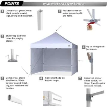 ABCCANOPY Easy Pop Up Canopy Tent with Sidewalls 10x10 Commercial -Series, White