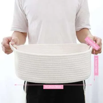 Show moreIntroducing the ABenkle Rope Basket, the ultimate addition to your home organization and decor! This small storage gift basket combines functionality with a stylish design, making it the perfect solution for keeping your space neat and aesthetically pleasing. Measuring at 14.2 inches (L) x 11 inches (W) x 5.1 inches (H), this versatile basket is crafted from 100% natural cotton, ensuring it’s not only durable but also safe for both children and pets. Whether you need to store books, shoes, towels, or even your furry friend’s toys, the ABenkle Rope Basket elegantly fits into any corner or shelf.