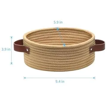 Introducing the **ABenkle Small Woven Basket** – the perfect blend of functionality and style! Measuring at 9.4" x 5.9" x 3.9", this mini cotton rope storage basket is designed to make organizing effortless and elegant. Crafted from 100% natural cotton rope, it is fully eco-friendly, free of chemicals and odors. Its soft texture makes it safe for all family members, even as a toy basket for your furry friends. The appealing oval shape and decorative handles add a touch of charm to any room,...