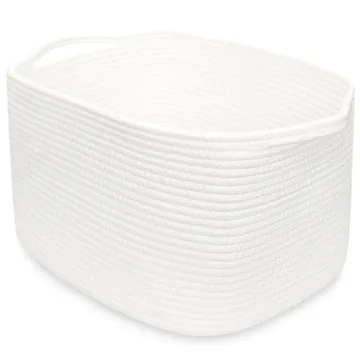 ABenkle Woven Storage Basket - Soft & Sturdy Cotton Rope Organizer, 13.5 x 11 x 9.5