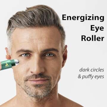 Show more Introducing the Abera Eye Roller Serum for Men – a powerful solution meticulously crafted to combat dark circles and puffiness. Infused with the invigorating essence of mint, along with the potent properties of Vitamin C and peptides, this serum is designed to refresh tired eyes, delivering a revitalized appearance that radiates youthfulness. The innovative metal roller applicator plays a crucial role by enhancing the absorption of the serum while providing a cooling sensation that soothes the delicate under-eye area. With a convenient size of 0.34 fl oz, this serum is not just effective; it’s also easy to incorporate into any grooming routine, ensuring you look your best at any moment.
