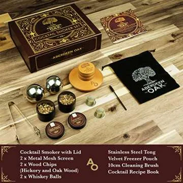 Aberdeen Oak Deluxe Cocktail Smoker Kit - Hickory & Oak Whiskey Infuser Set - Smoky Flavor Enhancer for Your Favorite Drink (Butane and Torch Not Included)