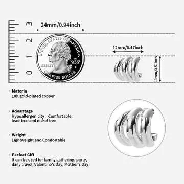 Show moreIntroducing the ABILITH Silver and Gold Triple Hoops Earrings, a stunning fusion of elegance and modernity designed to elevate any outfit. Crafted with precision, these earrings feature a unique three-layer circle shape that adds a contemporary twist to the classic hoop design. Their hypoallergenic properties ensure that even those with sensitive ears can enjoy their beauty without any irritations. Measuring at a perfect size of 25mm x 15mm, they enhance your natural beauty without overwhelming your look.