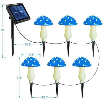 Show more Transform your outdoor space into a captivating sanctuary with our stunning Solar-Powered Blue Mushroom Garden Lights. Each set features 6 beautiful blue mushroom lights that not only illuminate but also enhance the aesthetic of your garden, creating a vibrant atmosphere. Crafted to provide 8 distinct lighting modes, these lights are designed to elevate your outdoor experience, making every evening feel special and enchanting.