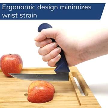 Unlike traditional knives, the ABLE-T knife features an ergonomic design that significantly reduces strain on the wrist and hand, making it easier to use.
