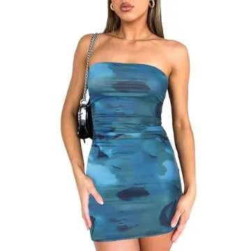 ABMOIU Women's 2024 Floral Tube Mini Dress Strapless Backless Party Club Short Ruched Bodycon Dresses Green Medium