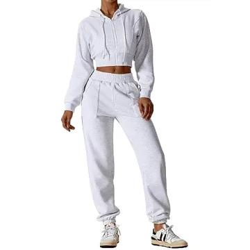 The set includes a chic zip-up cropped hoodie paired with matching