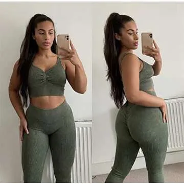 Show more Introducing the ultimate workout companion - our expertly designed Two Piece Workout Set for Women. This fabulous ensemble combines style and functionality, featuring a high support sport bra and butt lifting leggings, perfect for any fitness enthusiast. Made from premium seamless ribbed fabric, this outfit not only enhances your silhouette but also ensures maximum comfort during your workouts. The sport bra boasts a sexy sweetheart neckline and front ruching that flatters your bust, coupled with a secure underband for the utmost support.