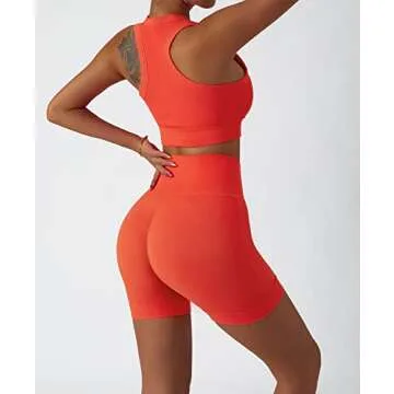 Show more Step into a world of comfort and style with the ABOCIW Workout Sets for Women, a sensational 2-piece seamless ribbed outfit that will redefine your active lifestyle. Crafted from a premium blend of 78% Nylon and 22% Spandex, this workout set offers the perfect combination of stretch and support. Designed for the modern woman, its vibrant orange hue not only stands out but also exudes confidence during your workouts. The high-waisted biker shorts are expertly made from thicker yarn, ensuring that you feel both flattering and secure, while the upgraded seamless ribbed knit fabric offers complete squatting freedom — no more see-through mishaps to worry about.