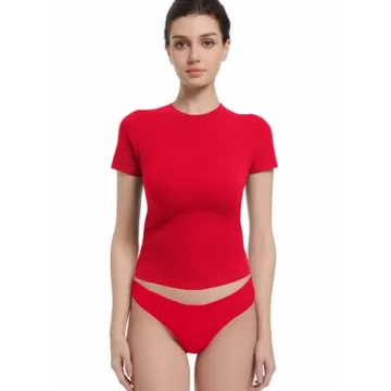 The elegant round neckline and short sleeves create a flattering silhouette that hugs just right, emphasizing your natural curves while allowing for ease of movement. Users rave about its soft and stretchy material that doesn’t feel clingy or restrictive while maintaining its shape wash after wash. Whether you're dressing it up for a lunch date or keeping it casual with your favorite joggers, this top is up to the task!