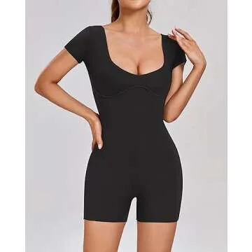 Show more The Abonlen Short Sleeve Romper is the epitome of effortless style and comfort for the modern woman. This casual yet chic one-piece jumpsuit, complete with shorts, is designed with a backless top that adds an alluring touch to your wardrobe. Constructed with high-quality, double-lined fabric, this romper ensures a flattering fit while providing ultimate comfort for all-day wear. The versatile black color makes it an essential piece that can be dressed up or down, easily transitioning from day to night.
