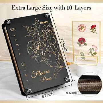 Show moreIntroducing the Aboofx Extra Large Flower Press, a gardener's dream tool designed to help you preserve the beauty of nature with ease and style. With a generous size of 13.4 x 8.7 inches, this professional-quality flower pressing kit accommodates more flowers at once, allowing you to save time while creating stunning pressed floral crafts. Whether you're looking to dry roses, mini carnations, or vibrant leaves, this kit is ideal for both beginners and seasoned crafters alike.