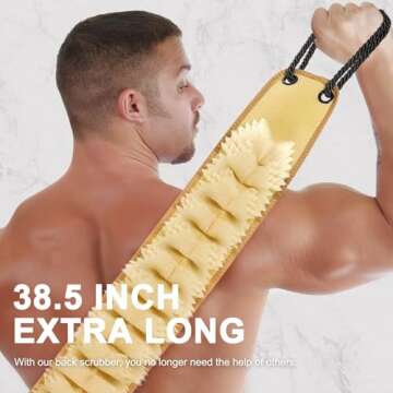 abootoo Exfoliating Loofah Back Scrubber for Shower, 38.5 Inch Exfoliator Washcloth with Antislip Handles for Use in Shower, Double-Sided Body Bath Luffa Washer to Deep Clean Back Skin for Women & Men